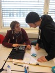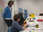 - Jasmina checking out the current bGeigie and Nicolas listening to Robin