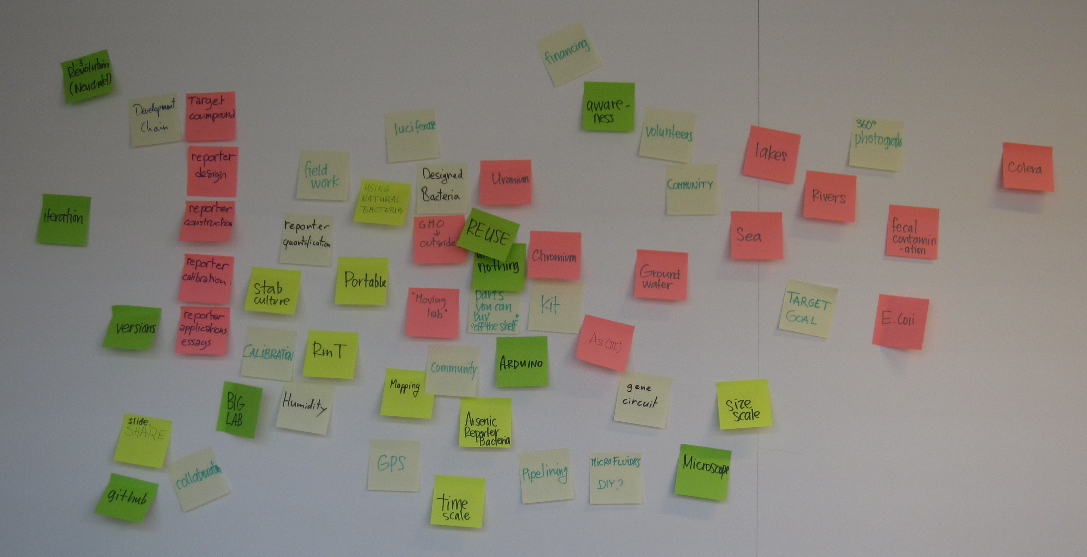 We parted with each person with a mission to look into different possible aspects (arsenic, fecal contamination; Swiss regulation on genetically modified organisms; mobile and field labs; how to map water quality) of the project, so we can define the design of the prototype.