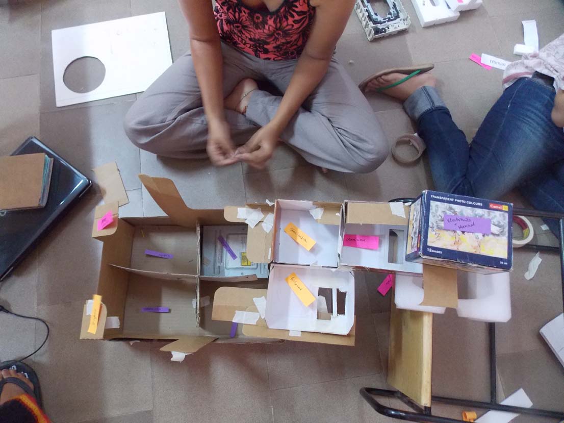 Taking inspiration from IDEO in California, we decided to try out the ‘Dirty Prototyping‘ process to generate more ideas. Using found materials as substitutes for the real thing, allows for as-out-of-the-box-as-you-can-get ideas, no matter how impossible it may seem!