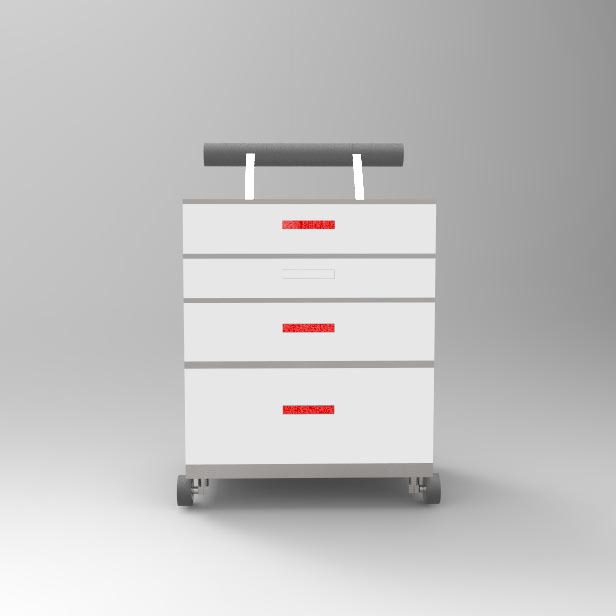 The final idea for the prototype is to have a trolley the four different compartments.It would be approximately 800 mm tall, 513 mm wide, and 390 mm broad (adjustable height, maximum of 3.5 feet tall)