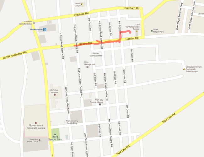 On the second day we travelled to KGF (Kolar Gold Fields) in the same Kolar district, where Arsenic contamination had been reported by the Department of Mines and Geology. We collected 6 samples taken from a public drinking tap, water tanker and local eateries that didn’t test positive for Arsenic. We got a chance to talk to the Nanjunandaswamy, the manager at the Municipal office at KGF, who introduced us to Mr. Ravindranath K.R, environmental engineer of Municipal Office, KGF. Our visit happened during the elections, so Mr. Ravindranath requested us to visit Kolar again in May.