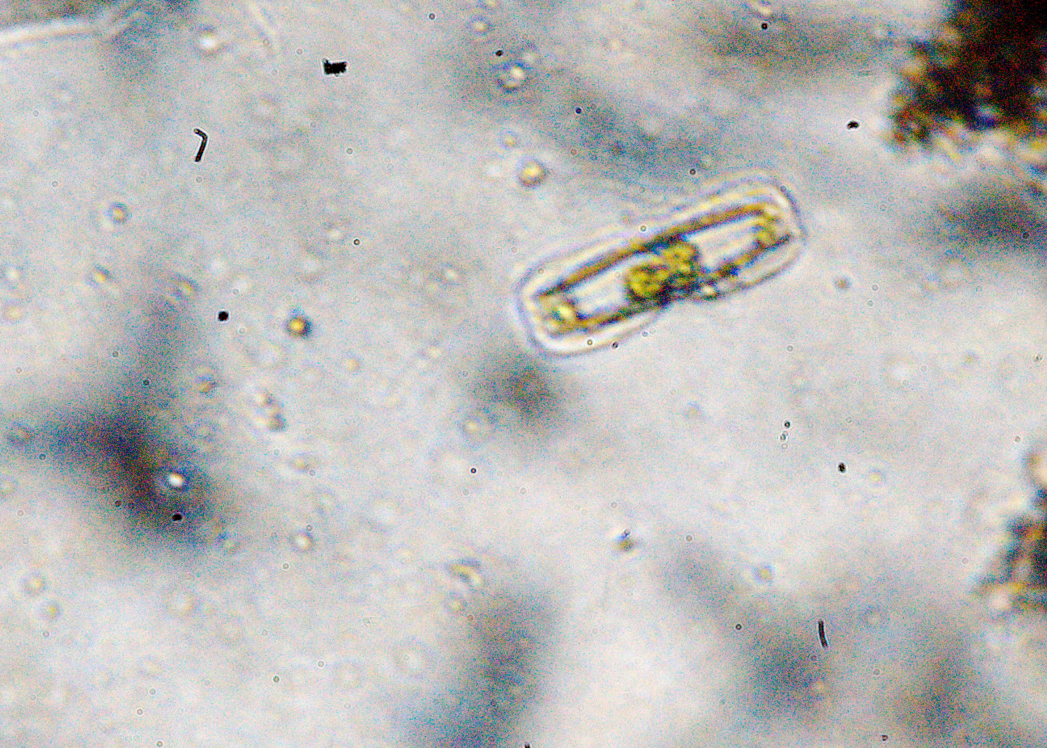 The diatoms are live here and some species are moving, which can make them hard to observe. If the concentration of the diatoms is high, this sample on the slide can be dried. After it has dried, The slide can be preserved using several methods. We used Akbars PVLG recipe and after mounting, sealed the slide with transparent nail polish.