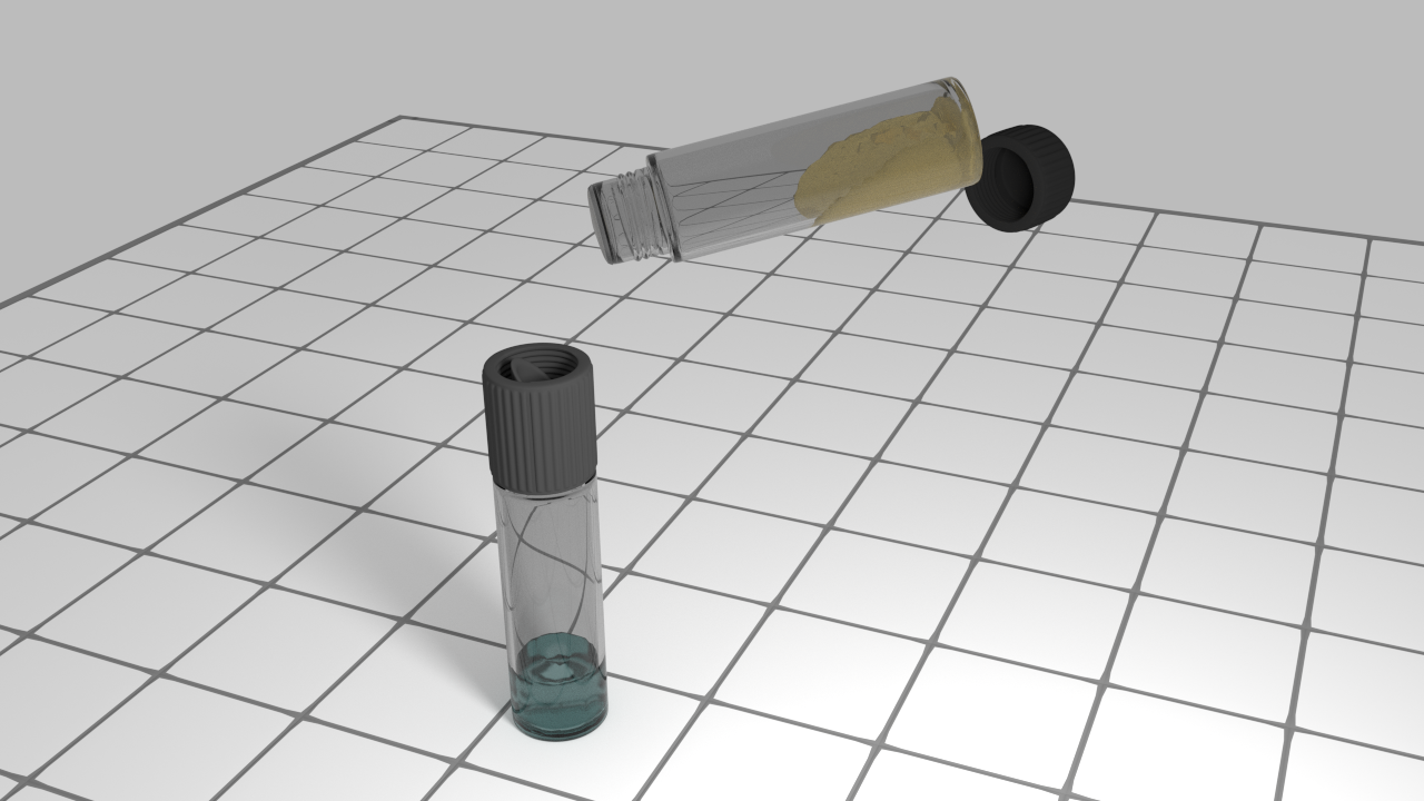 - First, collecting a sample of water to test in a glass vial. This sample must be filtered, also we can for example, put a coffee filter in front of the opening of the vial when we collect the water. Moreover, because we will mix the two samples in a closed system, we can add a limited and measured volume of collected water, shown by a line on the vial.