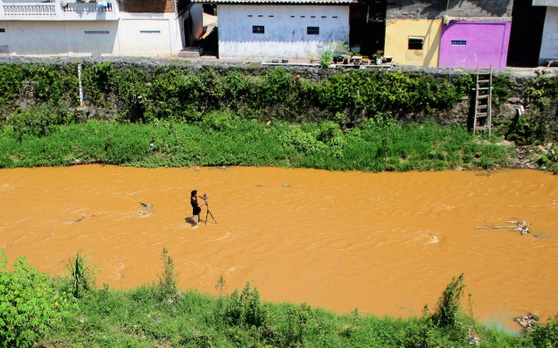 In the third day, February 25th, we found an extraordinary thing happen on the river when we arrive on the spot 09. The river flows with gold color stream of mud. People who live nearby said that its a post-flood condition that was happen on the night time. However, on that great sunny day, we succeed to make documentation of 4 spots, which are spot 09 – spot 12.